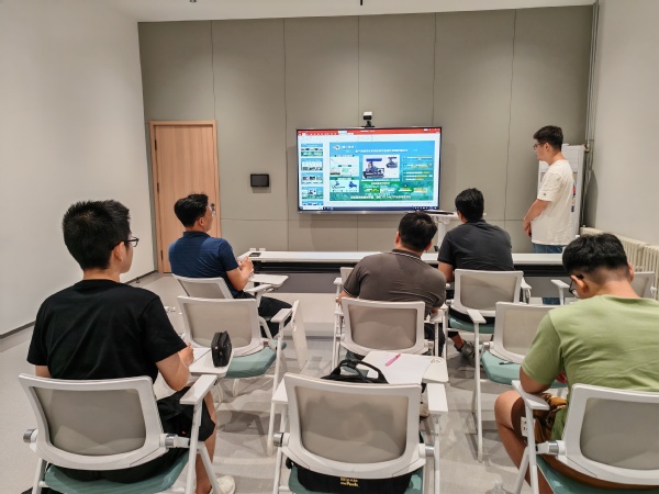 本次推进会以团队负责人路演演练与专家点评两部分进行。伊鹏、刘衍聪、霍添、张鹏、齐瑞指导的《泥中淘金——莲藕高效智能采收应用与推广》项目入围本届国赛现场赛,项目负责人田兴辉通过PPT汇报的方式,从实践过程、创新意义、社会价值和发展前景等多个角度全方位阐述作品。毛剑、伊鹏、霍添针对项目的逻辑、思路、内容、表述等进行了一一点评。毛剑鼓励参赛员工发挥自己的特长与专业优势,不畏艰难,迎难而上,耐心打磨参赛项目并对参赛团队提出了更高的要求与期望,他鼓励参赛项目认真听取专家的意见,进一步对项目进行修改完善,希望项目团队能够展现石大学子的风采,在国赛中取得优异的成绩,为学校与学院争光。
