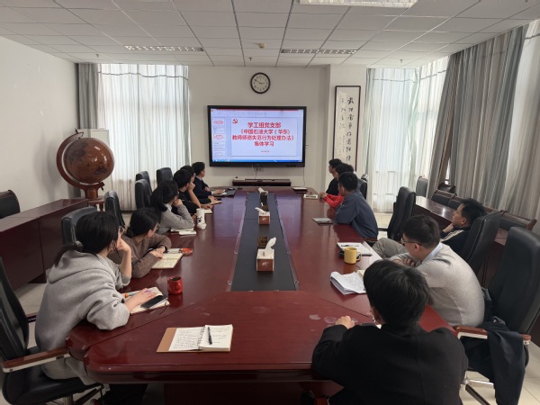 会上,支部书记董建党带领全体党员系统学习了《中国石油大学(华东)教师师德失范行为处理办法》,围绕师德失范行为、调查与处理等关键内容进行逐条学习,引导全体学工教师明确师德底线、严守行为规范。